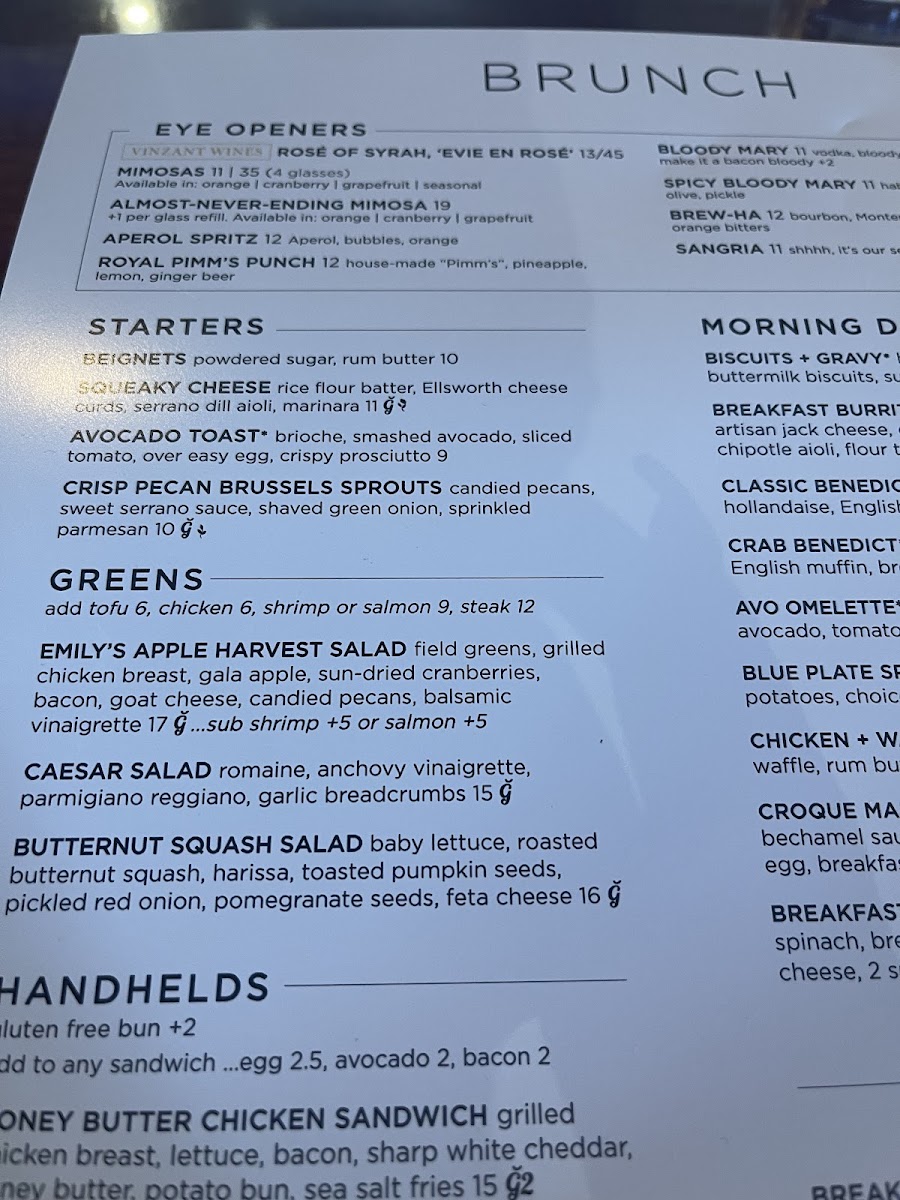 house-baked English muffin, arugula, country ham, poached eggs, brown butter hollandaise, breakfast potatoes